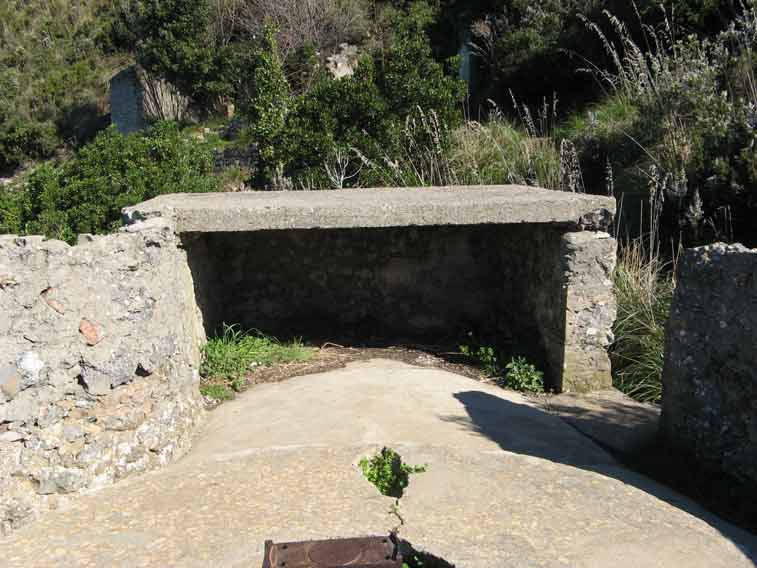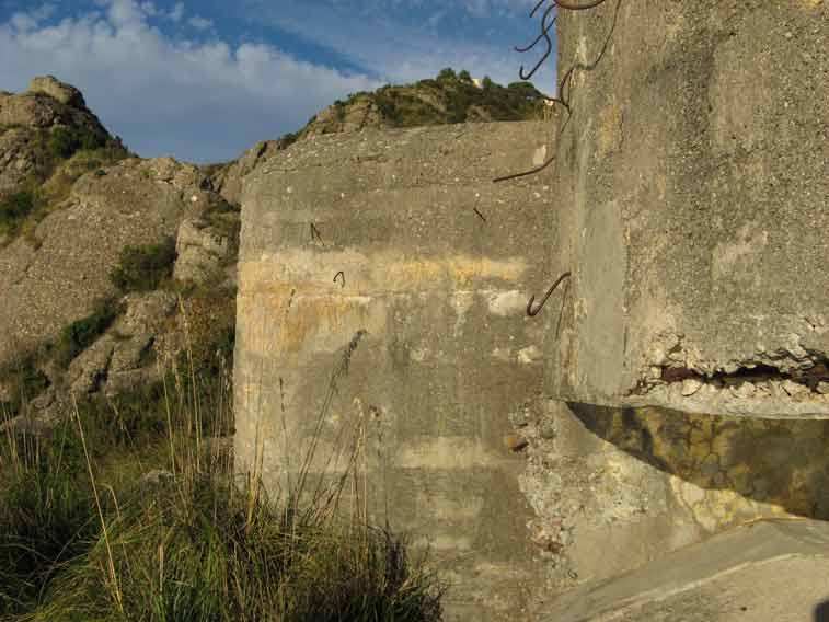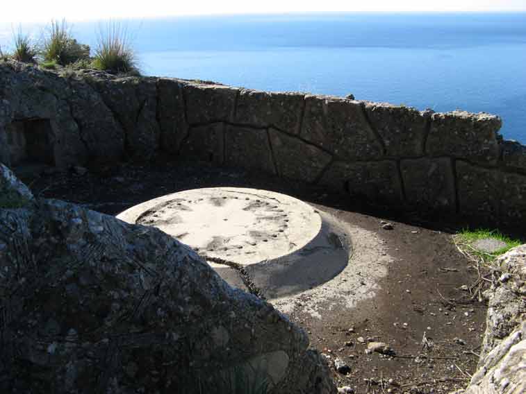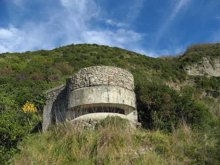 Postazione allo scoperto per il pezzo da 152/45.Un ingresso laterale conduce alla riservetta munizioni ubicata in caverna in caverna