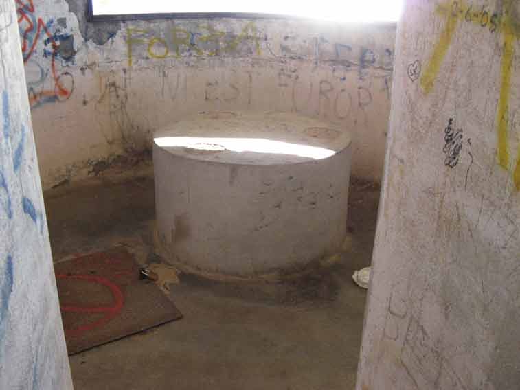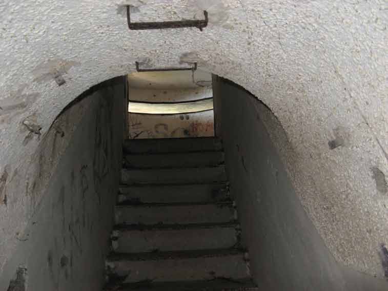 Una botola con coperchio metallico,attualmente chiusa con lucchetto permetteva di accedere tramite una scala a pioli metallica e una in muratura a chiocciola al tunnel di collegamento con il bunker radio sottostante(N.3)