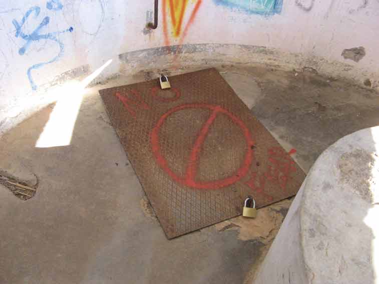 Il coperchio della botola di comunicazione con il bunker N.3,chiusa con 2 lucchetti.