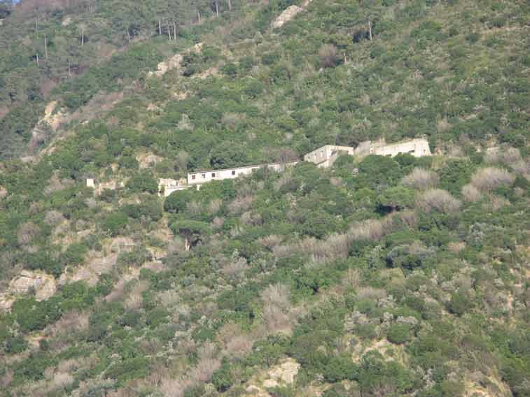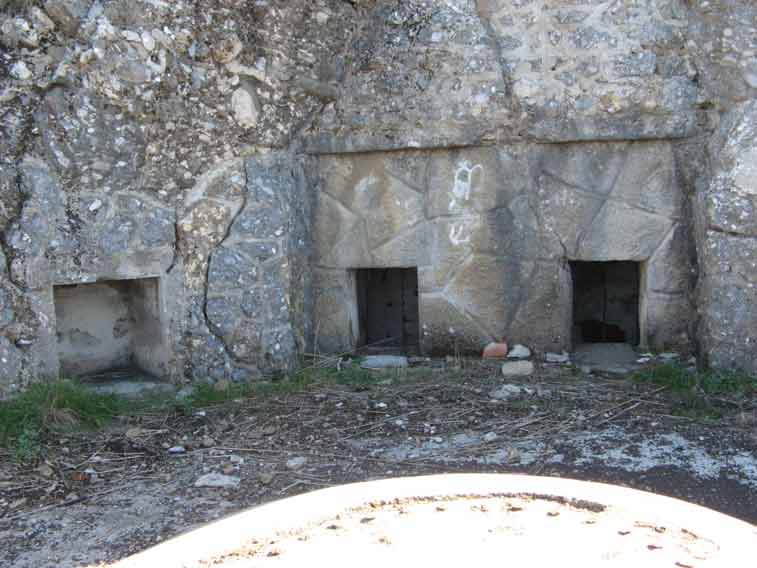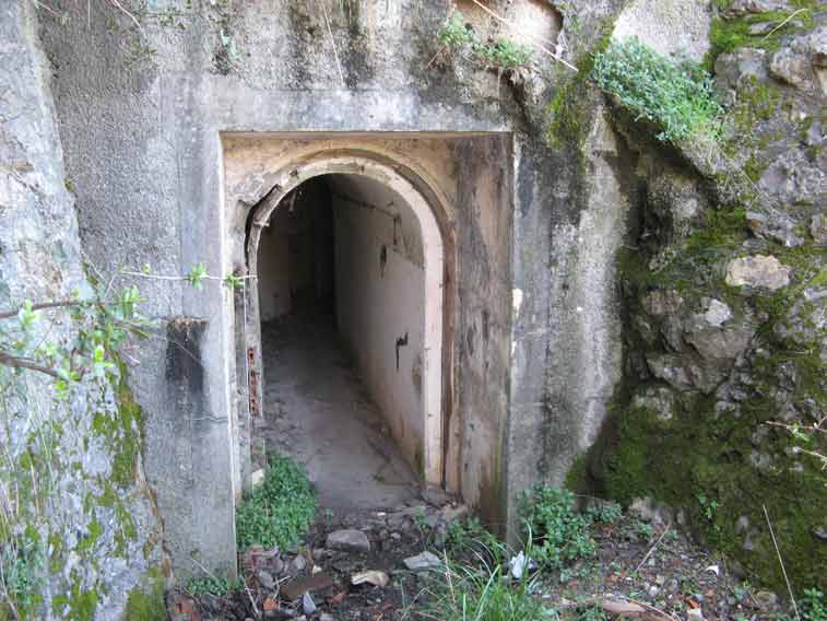 Nella parete rocciosa dietro agli edifici erano ubicati gli ingressi dei tunnel N.1 e 2 adibiti a deposito munizioni e ricovero per il personale.