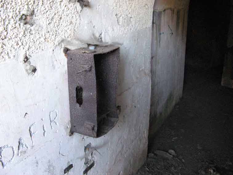 Di fronte all`ingresso del locale comando è ancora visibile,nella sua posizione originale una lama metallica con funzione di pulisciscarpe,necessaria a togliere il fango dalle suole.