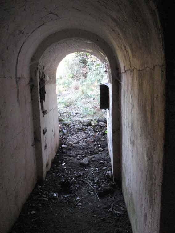 Il tunnel N.1 si inoltra nell`interno con un corridoio diritto rivestito lungo circa 25 metri,al fondo un locale di circa 30 m2 fungeva da deposito munizioni.