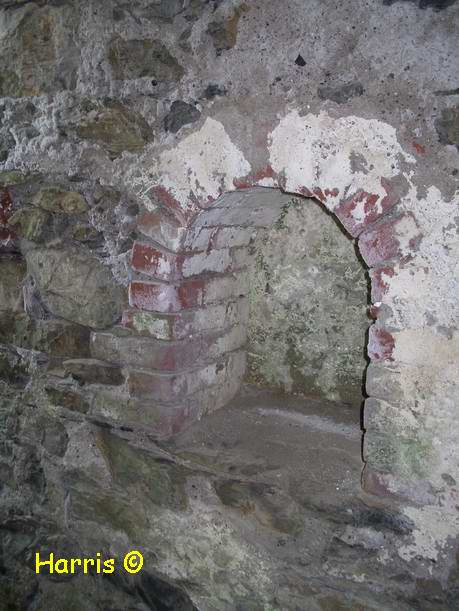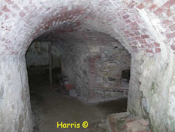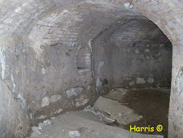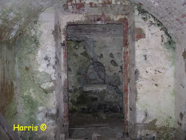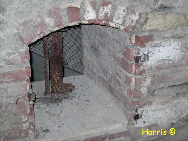 Un`apertura che probabilmente (a giudicare dai cardini su entrambi i lati) conteneva la lampada a petrolio per l`illuminazione di sicurezza del deposito polveri tramite finestra a vetri chiusa