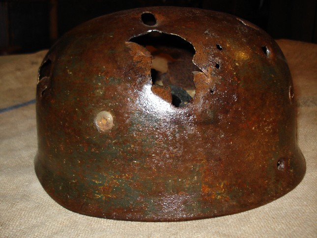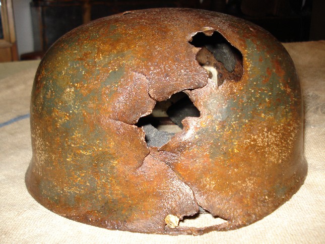 [II][II][II][II]Un elmo danneggiato in battaglia complimenti. E se non ho visto male con almeno due colpi di fucile o mitraglia.