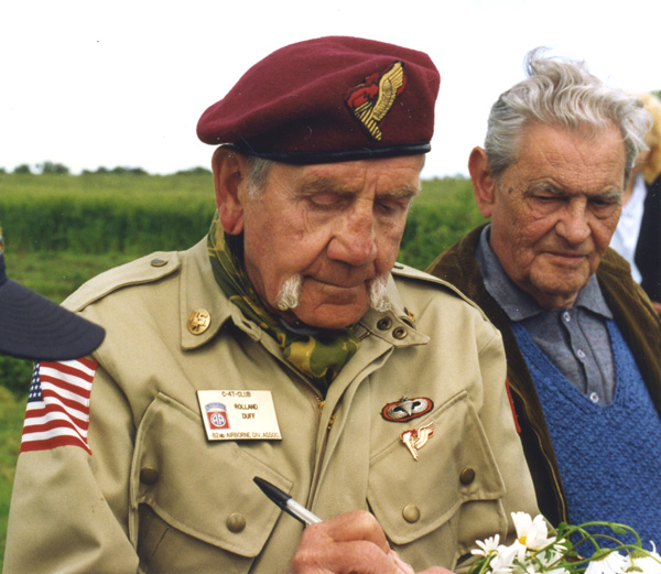 Il veterano Rolland Duff, membro della 82d era tornato in Francia l'estate scorsa per effettuare sulle spiagge della Normandia un salto commemorativo quale componente dell'invasione alleata nel Giugno 1944.