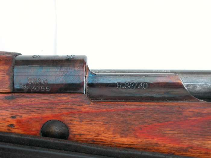 <font color="red">I punzoni sul lato sx della culatta, e la dicitura G.33/40 che ne identifica il modello.</font id="red">
