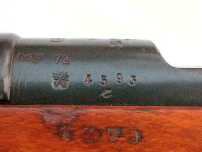 <font color="red">Il "945" identifica che l'arma è stata prodotta dalla "Waffenfabrik Bruenn AG, Brno, Czechoslovakia", e l'anno 1940, gli esemplari marcati così, sono probabilmente parte della produzione iniziale, ottenuta modificando le carabine Cecoslovacche VZ 33.</font id="red">