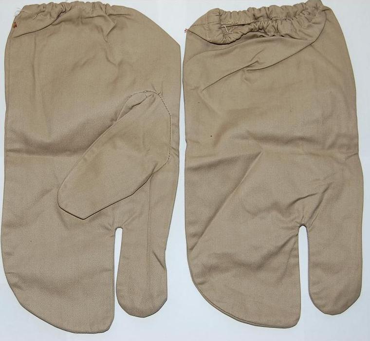 I guanti sono in realtà* dei Windproof Gauntlets ovvero sovraguanti anti vento: questi servivano per poter mimetizzare i guanti Cold Weather(Climi Rigidi) quando veniva indossata l'omonima tenuta. Ovviamente era dotazione per tutte le forze armate infatti erano provvisti di indice separato per poter sparare con un arma.