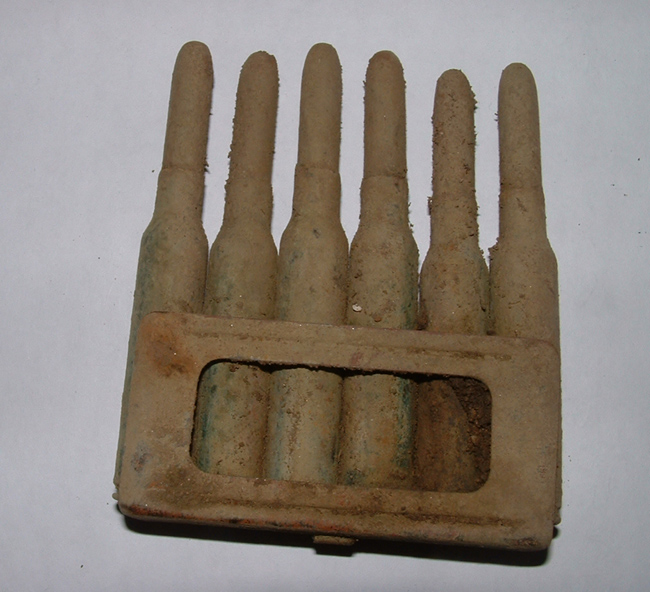 Sono rimasto colpito dallo stato di conservazione di questo caricatore del 91. Sotto uno strato sottilissimo di terra e quindi esposto per 90 anni alle intemperie , c'è ancora del colore sulle munizioni. Non riesco a darmi una spiegazione.