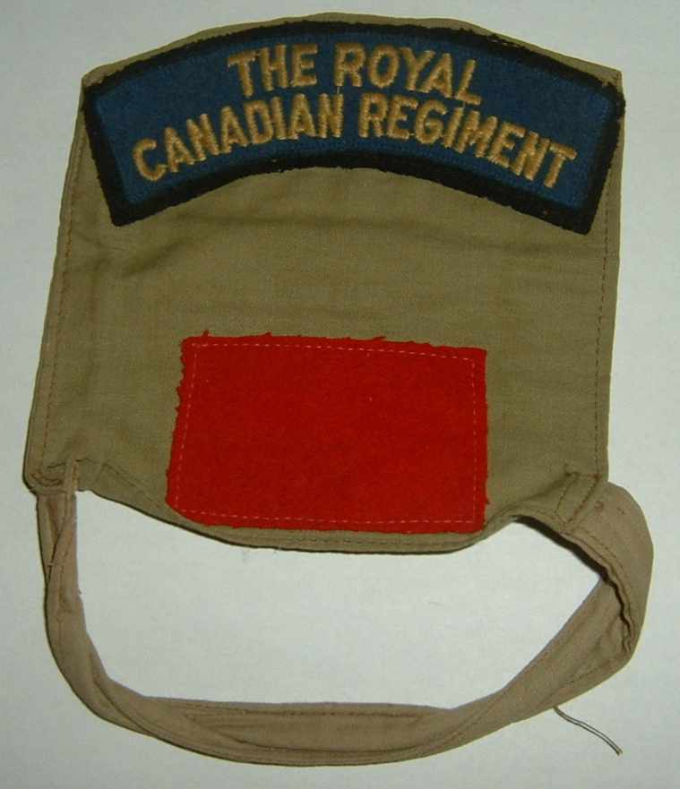 Royal Canadian Regiment, armlet da soldato, title ricamato su feltro, insegna divisionale stampata su tela.