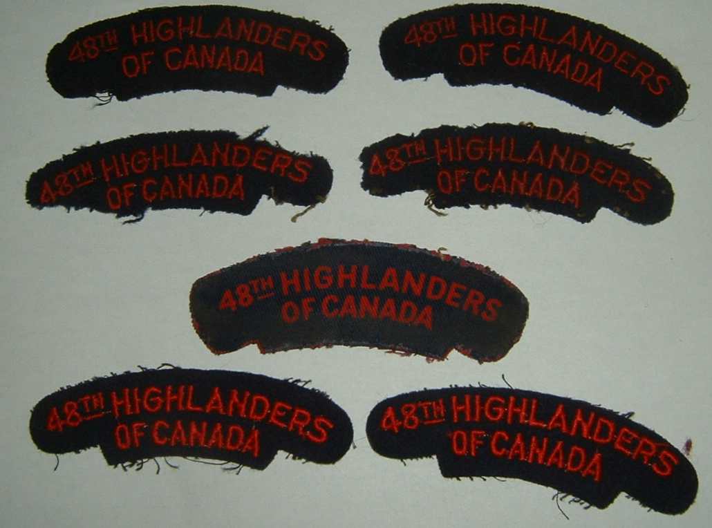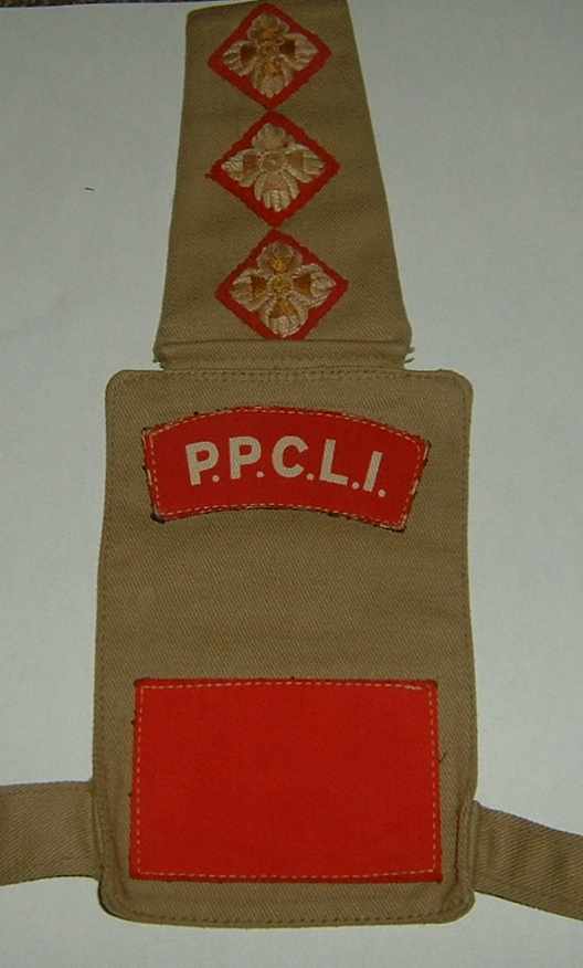 Infine armlet da capitano dei Pricess Patricia Canadian Light Infantry, uno dei più antichi e rinomati reggimenti canadesi, title e insegna divisionale stampati su tela. Da notare che tale era la comodità* degli armlet che spesso i canadesi non rinunciavano a indossarli nemmeno sul BD, con uno strano contrasto di colori....