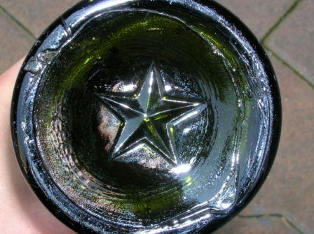 Ha una scritta in rilievo S.A.T.SANPELLEGRINO e sul fondo una stella,chiusura con tappo corona e non è soffiata[ciao2]grazie