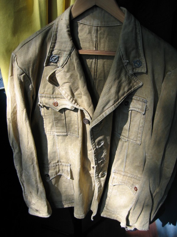 Questa giacca e relativi pantaloni sono stati ritrovati in un sacco della spazzatura [panic3]insieme ad indumenti civili.Credo che in origine avesse delle spalline...mentre all'interno c'è solo la taglia "0".
