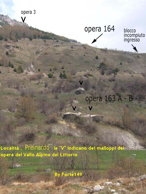 A chi fosse interessato a una visita ai 2 blocchi che compongono l`opera si consiglia di superare il colle del Moncenisio ed iniziare la discesa verso Lanslebourg.Lasciare la vettura ai bordi della strada sotto una chiesetta ed imboccare una stradina sterrata in salita alla desta della RN 6.Proseguire fino a trovare a destra una grangia(a questo punto alla nostra sinistra in basso è visibile la casamatta A1 di Mollard,raggiungibile in pochi minuti attraverso il prato con visita consigliata al ritorno e proseguire per un centinaio di metri fino a trovare sempre alla nostra destra una pista da sci, imboccarla e dopo un po proseguire sempre diritti,fuori sentiero in direzione della cima dell`Ouillon des Arcellins fino alla quota di 2285 m. e da qui iniziare la ricerca dell`opera.Lo scrivente è giunto alla quota indicata spostato di un centinaio di metri a destra quindi in pochi minuti ho raggiunto l`opera.Non suggerisco cartine in quanto per raggiungere l`opera non vi sono sentieri indicati,ma essendo la zona ricchissima di piste da sci(non indicate sulla cartina) se si è fortunati si potrà* eventualmente raggiungere l`obiettivo percorrendo queste.Un`ultimo aiuto:a fianco della casamatta è ubicata la stazione di arrivo di una seggiovia,però non illudetevi:funziona solo nel periodo invernale....![ciao2] a tutti Gianfranco