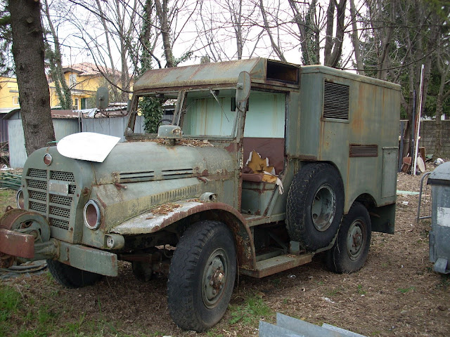 ecco dove era finito! è un OM CL65 che appunto negli anni 70 venne alestito per questo scopo; interessante il fatto che è stato a suo tempo "civilizzato" come è evidente dall'impianto luci e dalla sigla I in ovale al posteriore ma poi.....Altra ipotesi invece che fosse un "esemplare non di serie" e quindi alestito in tal guisa su un telaio "Civile".... comunque interessante per chi ha spazio e il prezzo era anche discreto...