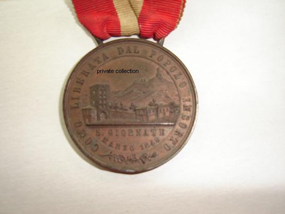 E' la medaglia istituita dal Comune di Como per i superstiti delle 5 giornate del 1848 ( dal 18 al 22 Marzo 184.