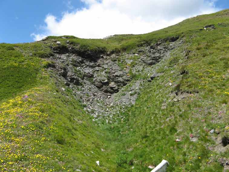 La trincea di accesso al Centro n.11.L'ingresso è ostruito da una frana
