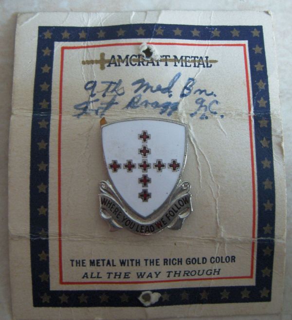 Vi chiedo un piccolo aiuto:qualcuno potrebbe identificare questi tre pins che ho in collezione?Sul cartoncino di uno di essi vi è scritto a stilografica 9th Med Bn,ok,Nono Battaglione Medico,ma di che divisione?Si legge anche Fort Bragg,North Carolina.Sugli altri due pins buio totale!!!Mi date una mano?