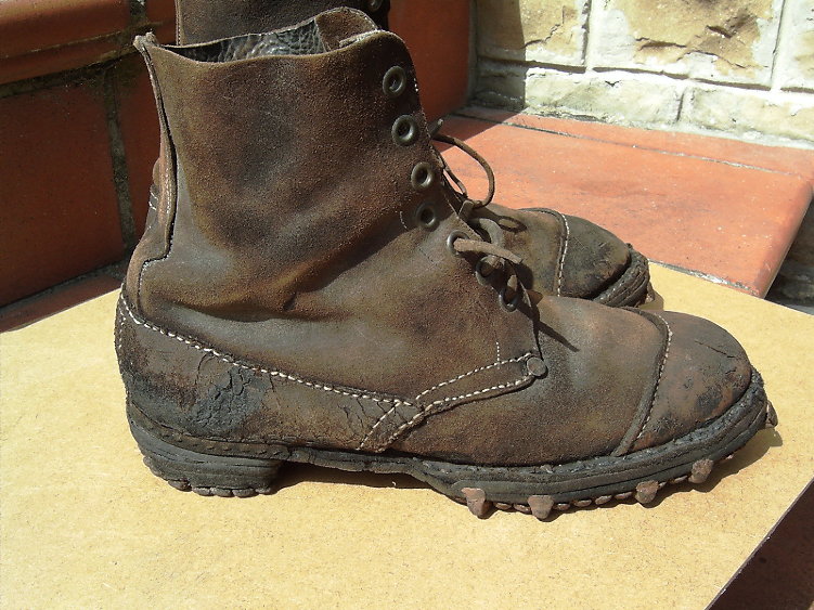 In occasione della nuova discussione aperta da Mauro sulle calzature austriache,voglio aprire questo nuovo topic a riguardo delle stesse ma da parte italiana.Sono tutte provenienti da ritrovamenti su ghiacciaio.Un paio sono i famosi stivaletti per armi a piedi M.1912 senza rinforzi im punta,con tre occhielli,quattro ganci e un occhiello finale in ottone,ma ce ne sono anche in ferro e diversamente alternati.I secondi sono il modello da truppe da montagna,unificati a tutto l'esercito nel 1916,con rinforzo in punta,anche qui vale lo stesso discorso per ganci e occhielli visto sopra.Questi ultimi sono proprio da Alpini in quanto e' visibile la chiodatura pesante della suola.Ciao Lucignolo