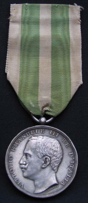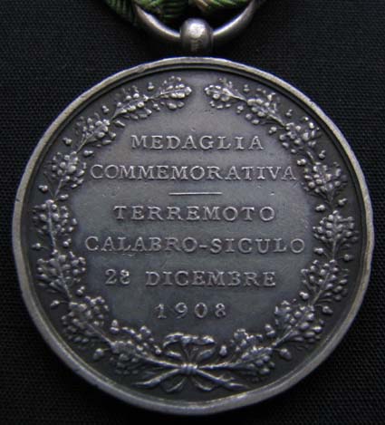 Istituita nel 1910, fu coniata, in argento, da L.Giorgi e dalla Regia Zecca (senza pero' propria incisione sul conio), a premiare le opere di soccorso e le azioni generose e filantropiche compiute nei luoghi devastati dal terremoto del 28 Dicembre 1908. Esiste anche una versione dello stabilimento Johnson, coniata impropriamente in bronzo. Fu' concessa anche al personale delle organizazzioni umanitarie straniere ed entro' ufficialmente nel medagliere Britannico con decreto del 1912 del Re Giorgio V.