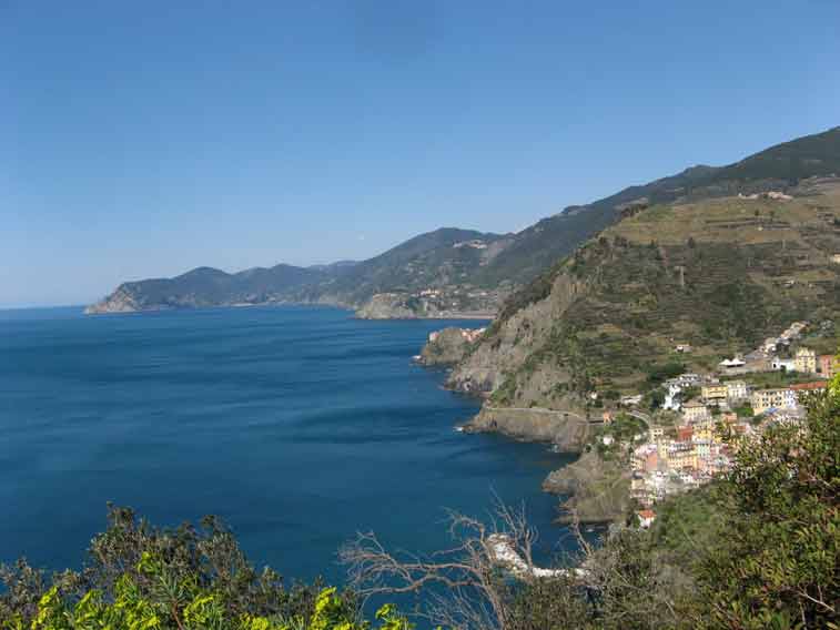 I borghi delle 5 Terre visti dalla Batteria.In primo piano Riomaggiore,a seguire Manarola e Corniglia,non visibile Vernazza e sullo sfondo Monterosso