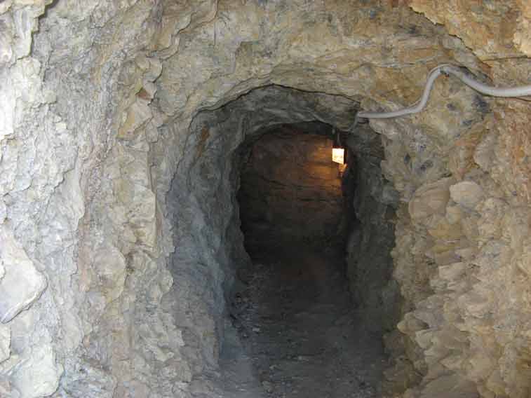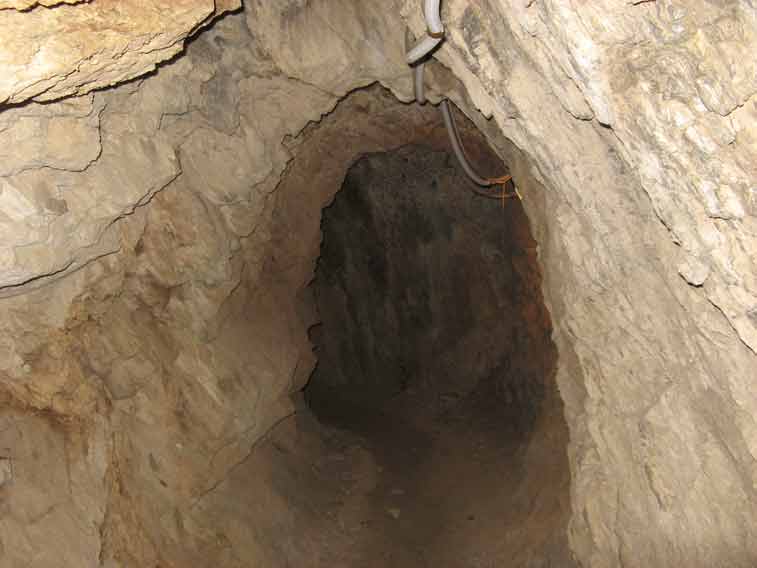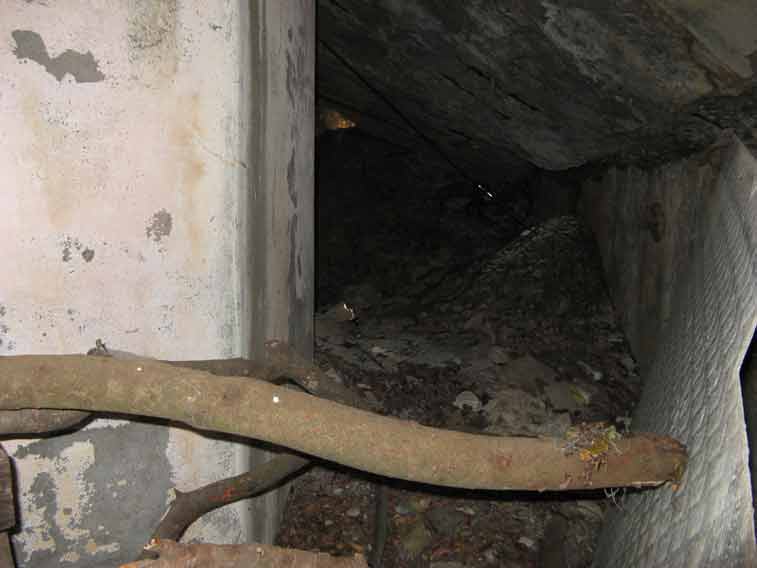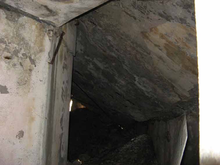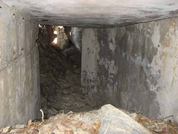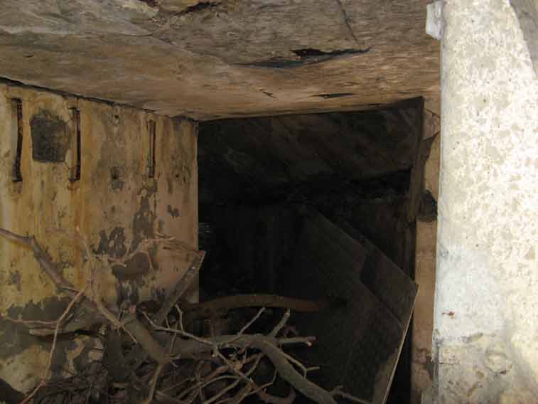 Interno del bunker,si intravede appena sullo sfondo,una scala a pioli metallica che scende verso il basso