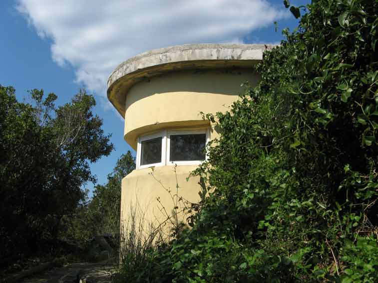 L`ex centrale elettrica è stata trasformata in un'aula per la didattica, la centrale di puntamento/osservatorio (immersa nella macchia mediterranea) dovrebbe diventare un punto per il birdwatching (in verità* ci si sta un po` stretti), gli ex alloggi ufficiali (?) sono stati trasformati in bar/ristoro (mai aperto!). Inoltre in due zone sono ubicati i servizi igienici (sempre utili) e una galleria artificiale (di cui parla Gianfranco) che forma un simpatico percorso di qualche decina di metri illuminato da qualche lampada (occhio alla testa).
