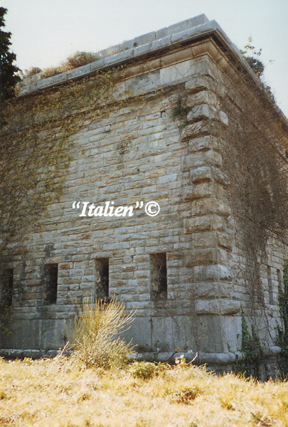 L`ingresso del fossato settentrionale: notare le feritoie sul muraglione e la rampa di accesso sulla destra.