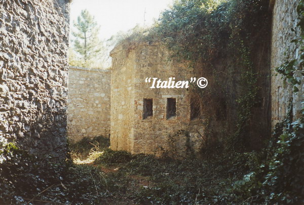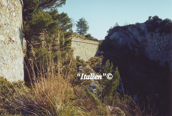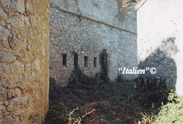 La parte finale del fossato meridionale. L`uscita da questo luogo si trova sulla destra dell`immagine (dietro l`angolo), infatti questo fossato finisce in una specie di terrazzo a picco sul mare (che in questa immagine è posto dietro l`osservatore).
