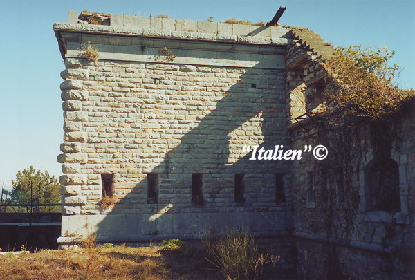 Questa imponente fortificazione, costruita intorno al 1876 in una posizione assolutamente strategica (è situato alla quota di 326 metri, e domina dall'alto entrambi i fronti a mare: quello verso Est, cioè verso l'interno del Golfo e quello a Ovest, verso il mare aperto), aveva originariamente la funzione di batteria antinave. I pezzi di artiglieria che ne costituivano l`armamento principale (11 pezzi da 240mm), erano capaci di fronteggiare qualsiasi tipo di minaccia, non solo navale, ma anche terrestre.