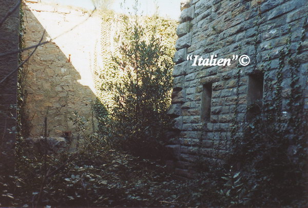 L`angolo immediatamente a sinistra del portone di ingresso, sotto c`è il fossato (settentrionale) che vedremo nelle prossime immagini.
