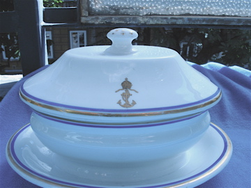 Mio nonno, ufficiale di marina, fu destinato a Pola poco dopo la prima G.M. Quando venne trasferito altrove, portò via due grossi piatti di portata ovali della mensa AU. Quello per gli ufficiali ha una bordatura azzurra e, a un vertice, l'ancora e la corona.