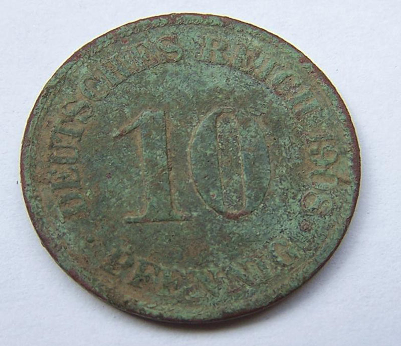 Salve a tutti, ormai visto che ho trasformato il giardino di mio suocero come un campo da golf posto queste foto e come ben sapete accetto notizie e commenti da tutti; il fondello del bossolo misura cm.1 e si legge L C 19 mentre la moneta reca la scritta "DEUTSCHES REICH 1908". Saluti a tutti voi, Enzo.