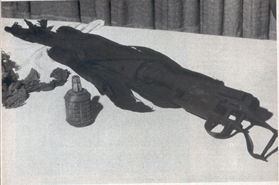 Il fucile e una bomba a mano conservati da Shoighi Yokoi