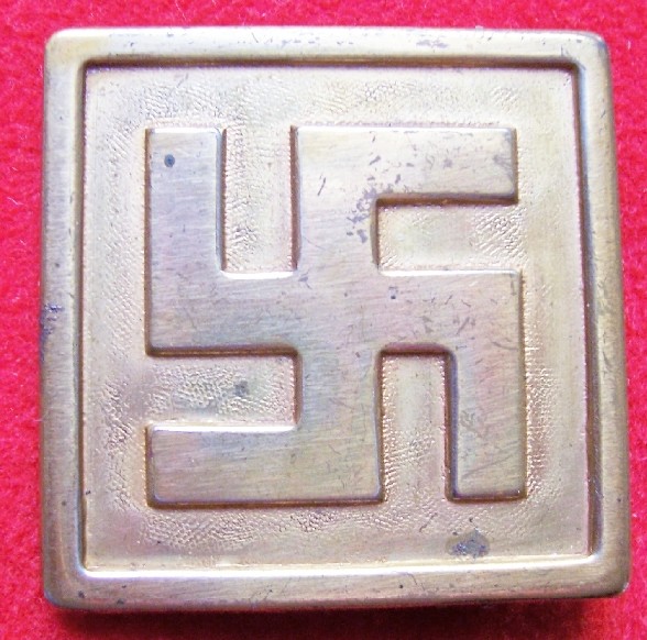 In ferro nikelato con il particolare innesto in celluloide della svastica. Ricordate sempre le piccole dimensioni: 4,5 x 3,5cm Marcata nel retro DRGM.