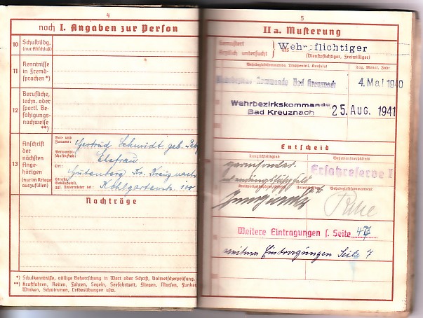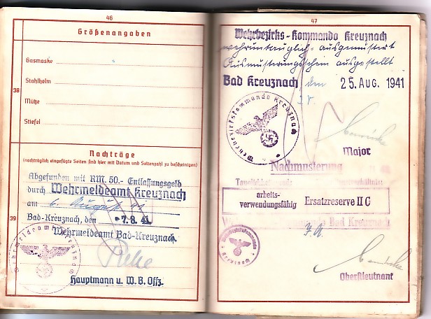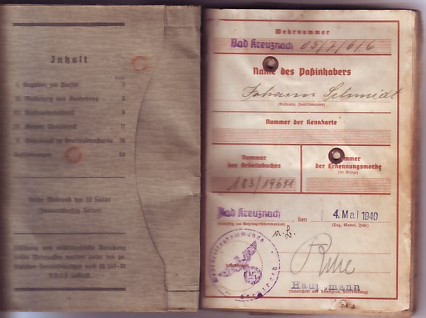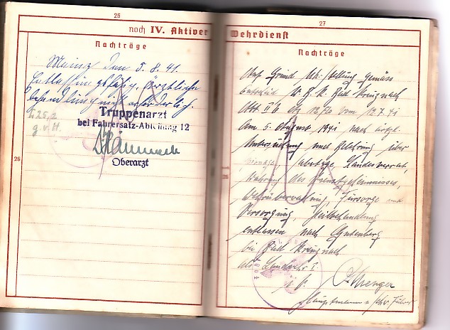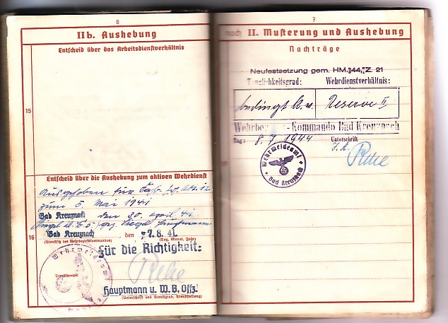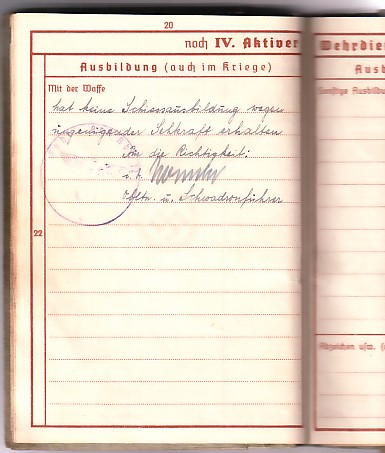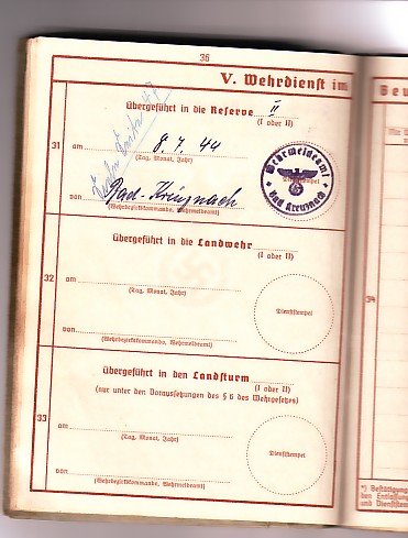 Salve posto il mio Wehrpass con la speranza che qualcuno riesca ad aiutarmi decifrando il possibile, credo che forse RANVILLE possa aiutarmi, visto che con il suo Wehrpass del Marinaio è stato così preciso!!