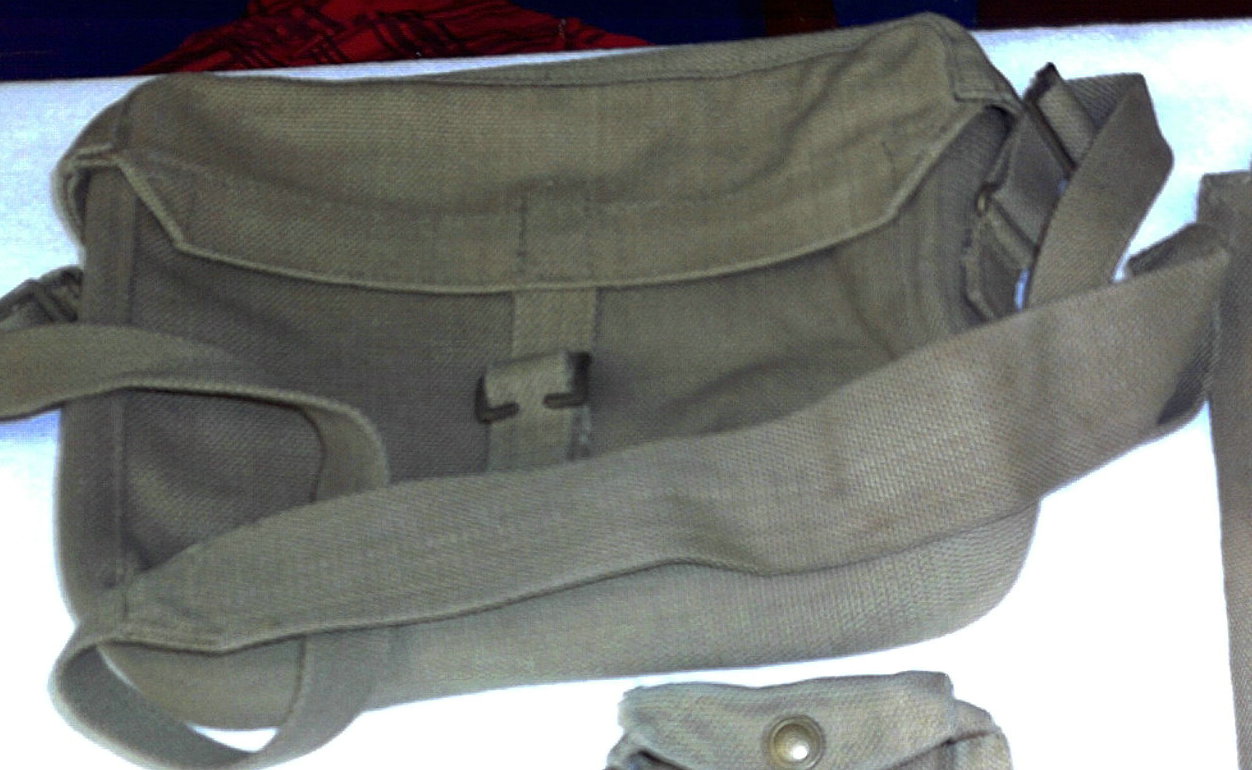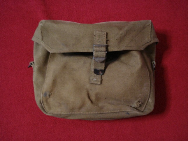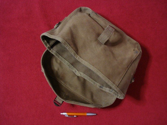 Ciao, ne ho una esattamente uguale a questa ma con la fibbia inglese. Le scritte esterne sono le stesse e nell'interno della copertura c'è la classica freccia ed altre scritte, oltre alla data, però non l'ho sottomano e non le ricordo. Amici che si occupano di radio mi hanno riferito che conteneva materiale telefonico. Alcuni anni fa ce n'erano delle vagonate in vendita da un commerciante/demolitore presso Livorno ed erano nuove.