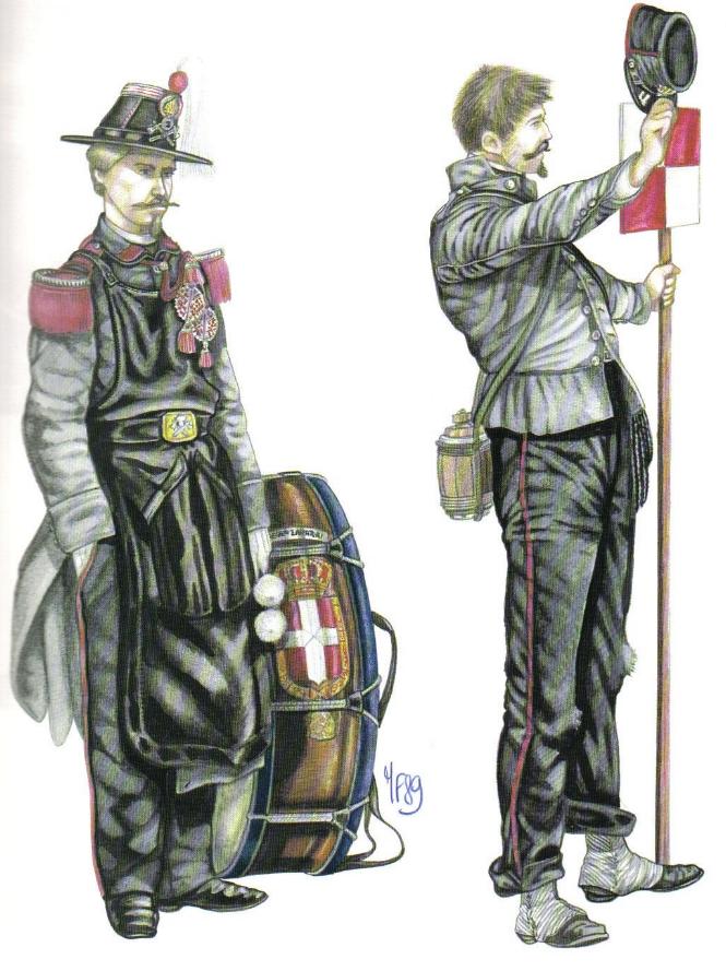 A sinistra zappatore in gran tenuta, a destra zappatore in tenuta per lavori invernali 1853-1861