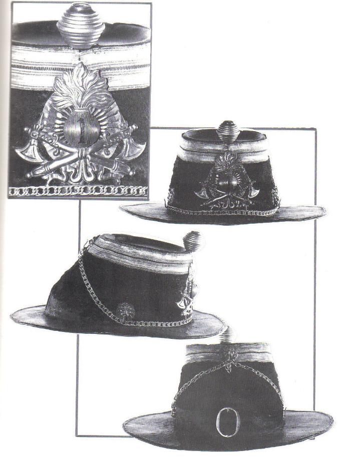 Il medesimo e composto di pelo così detto di gambello nero inglese ed è di forma cilindrica inclinato, sul genere del kepì di fanteria munito di un`ala compita, la quale è coperta di una tela cerata straforta, placata col catrame, l`imperiale è di corame contornato d`un gallone bianco.