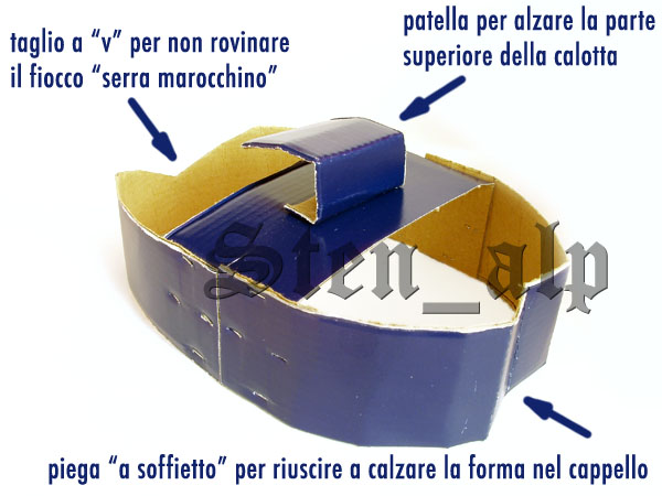 come promesso a "H" posto il telaietto autocostruito col cartone per tenere o ridare forma ai copricapo.