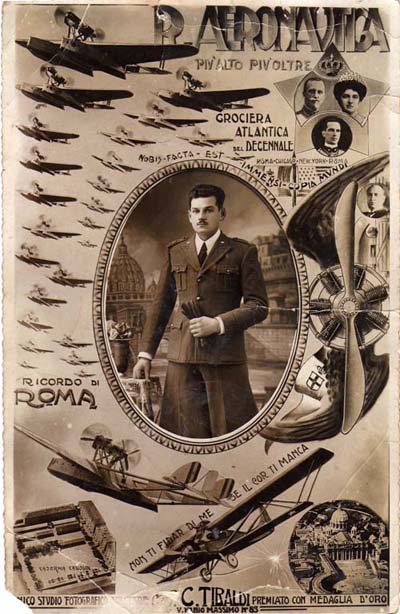 amici miei finalmente è arrivato lo scanner,questa sera inizio a postere la foto di mio nonno,morto quando mio padre aveva solo 3 mesi,la nonna mi raccontò che dopo l 8 settembre rimase fedele alla patria e al Duce dando supporto alle unità* aeronautiche tedesche come motorista e servendo nella contraerea,prima dell armistizio mia nonna ha detto che era stato a roma e aveva fatto una trasvolata di cui questa foto è il ricordo:la crociera atlantica del decennale