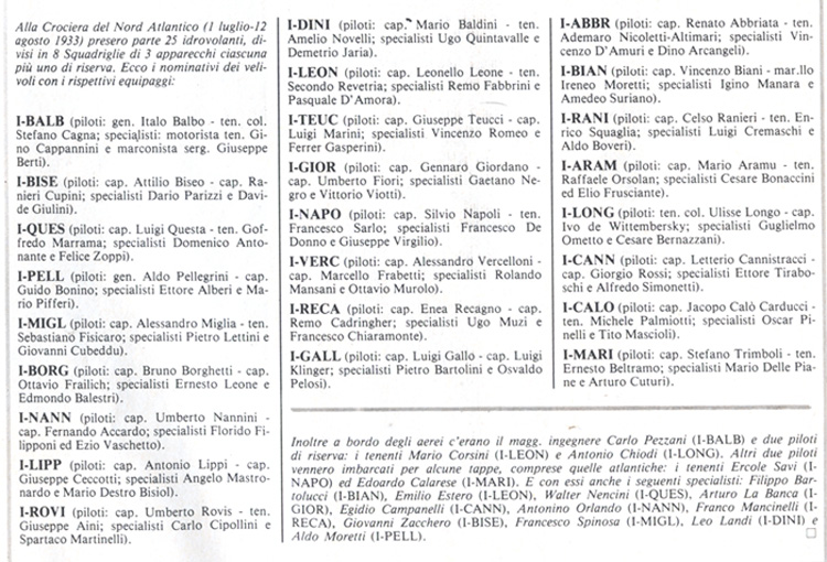 Sto cercando di risalire ai nomi dei trasvolatori atlantici per cercare il generale piemontese che regalo' a mio padre la bandiera che porto' con se nella trasvolata e che sventolo' all' arrivo oltroceano.