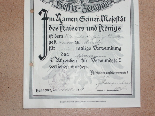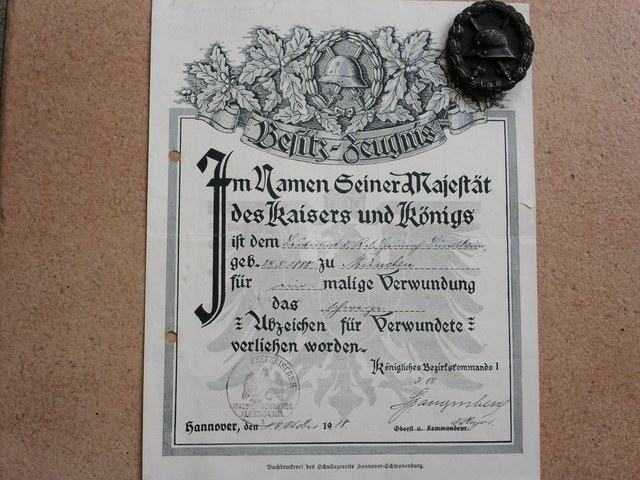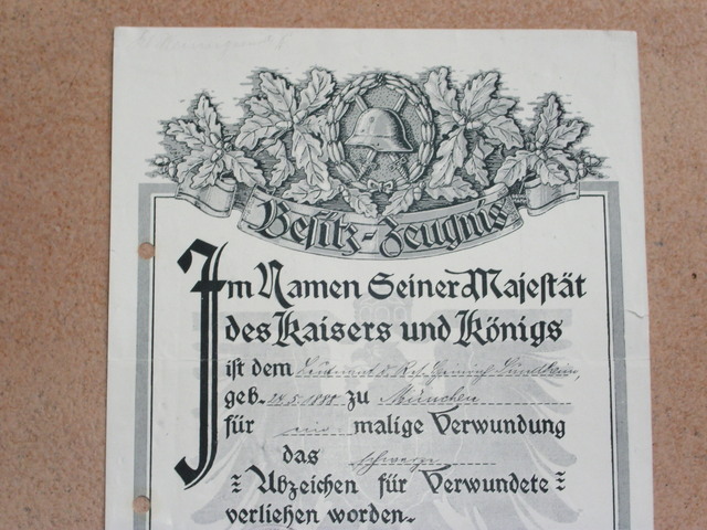 si tratta dell'attestato di conferimento per i Verwundeten-Abzeichen,in questo caso il conferimento è per una distintivo di terza classe (nero).