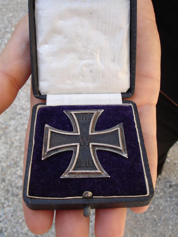 La croce ek1 e' marcata K.A.G con la sua scatola originale, di vellutino viola e l'interno e' in legno.