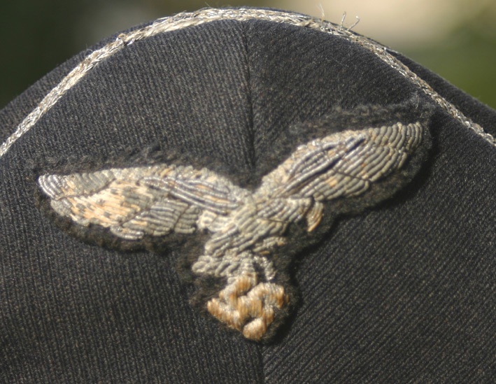 Penso inoltre che il soggolo sia il suo originale : discorso " cortezza " dello stesso a parte ( peraltro riscontrabile su molti altri cappelli ), se notate bene il grado di ossidazione dello stesso e dell' Aquila mi sembrano identici !