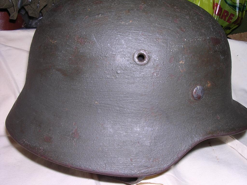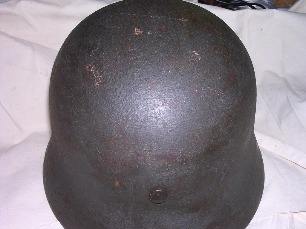 vorrei un commento su questo elmo mod 35 camuflage con vernice antiriflesso l'elmo e' marcato all'interno ET66 ed posteriormente 84 l'interno e' purtroppo rimontato comunque originale proviene dalla normandia .