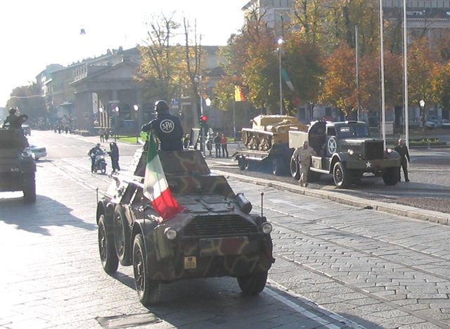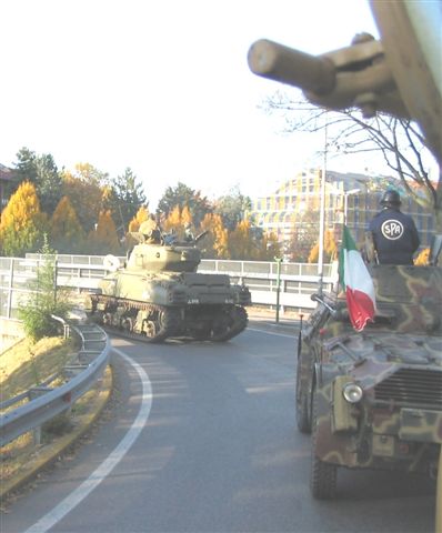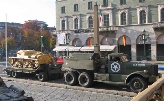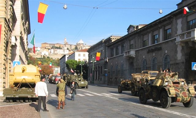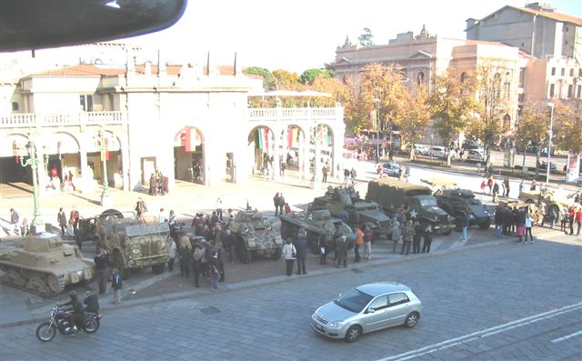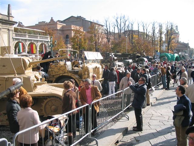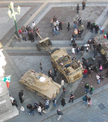 Nel 65° anniversario della battaglia di El Alamein ed a ricordo dei caduti di ogni patria, presentazione del restaurato semovente da 75/18 proveniente dal parco della Rocca di Bergamo. Il restauro si è svolto a cura e spese della società* Oto Melara di La Spezia che ha provveduto in primo luogo al risanamento generale del mezzo.
