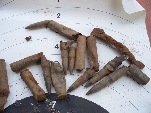 Ciao qto è quello che abbiamo rinvenuto stamattina da un breve sopralluogo.Purtroppo come si vede sono stati tranciati dai mezzi agricoli ma dalla colorazione nera delle palle di qti 30 06 si vede che sn perforanti.a lato ci sn anche due schegge.spero che siano di vostro gradimento