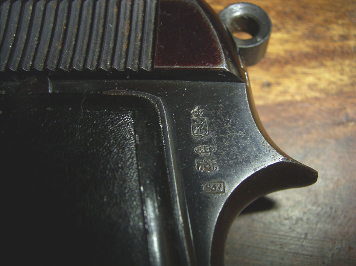 La pistola ha solo due punzoni uno coronato con scritta (PSF)e 1937 l'altro coronato con fucili incrociati, credo siano i collaudi di Gardone.... almeno per adesso non ne ho visti altri.