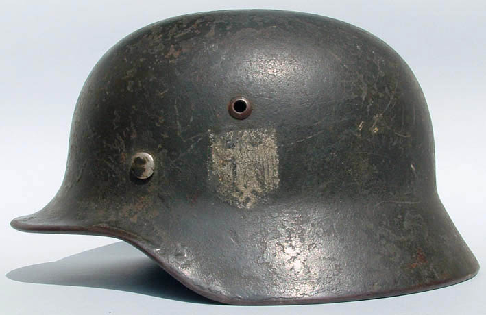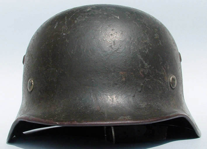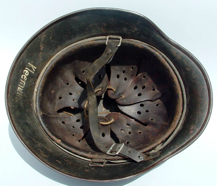 posto un 35 EF64 ricondizionato d'epoca per l'esercito da un elmo marina, infatti l'adler d'orata è visibile in parte sotto quella heer, anche il cerchio è stato sostituito sempre al momento del ricondizionamento con un modello in ferro, soggolo presente ma la parte corta si è rotta, mai smontato o manipolato!